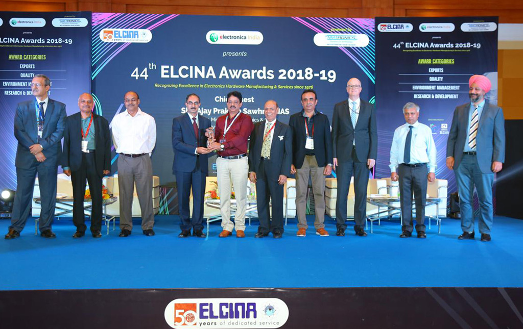 Sahasra Electronics won 1st prize in 44th ELCINA Awards for Outstanding Achievements in “Business Excellence” in F.Y. 2018-19