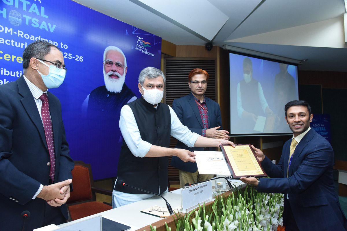 Sahasra Electronics Private Limited, Noida got awarded for Outstanding Contribution in Promotion of Electronics in Manufacturing of ALL IN ONE PC's (AIO) in F.Y. 2020-21
