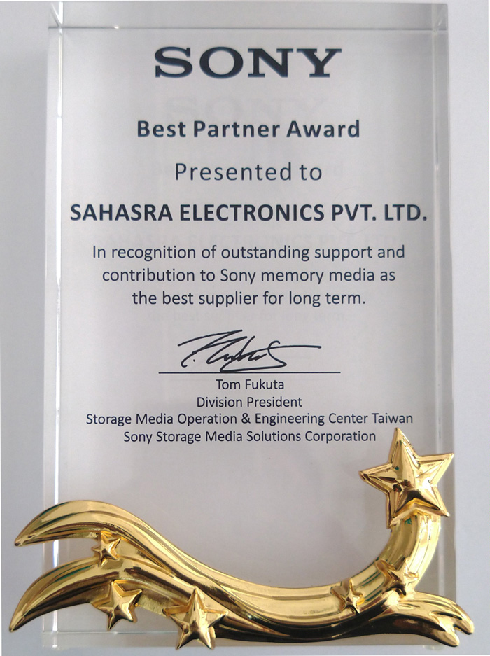 Sahasra Electronics has recieved the award for outstanding support & contribution in Memory Division from SONY in 2019