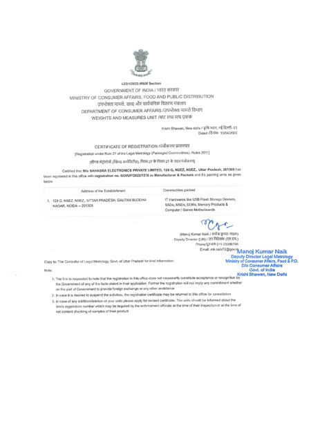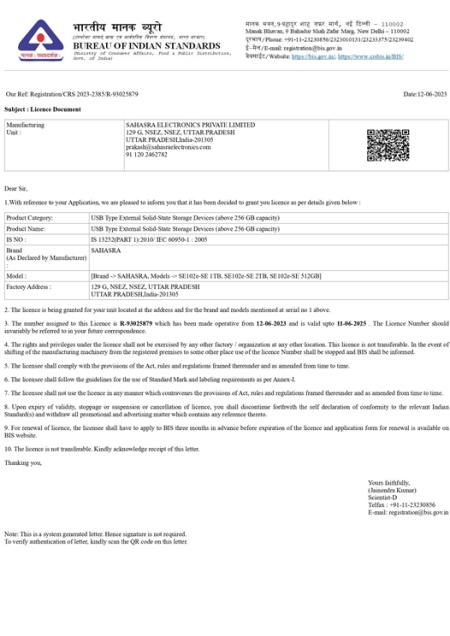 BIS Certificate (USB Type External Solid-State Storage Devices: